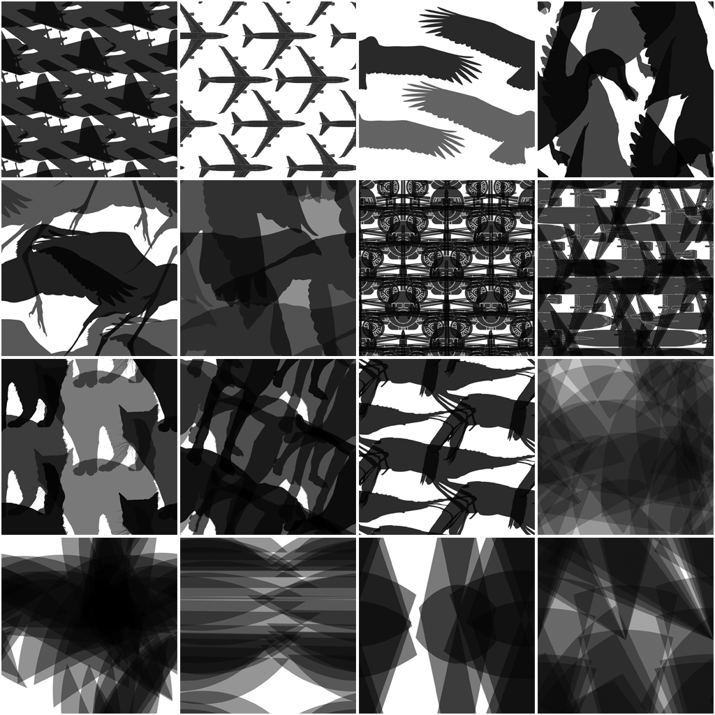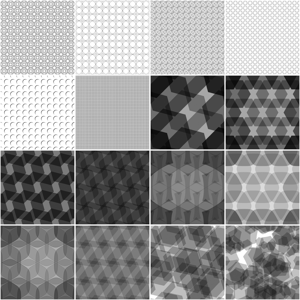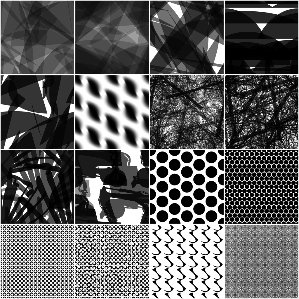 Use these keyframe enabled animation parameters to easily make your background flow. Some of the patterns create mind bending illusions when they are rotated over time.